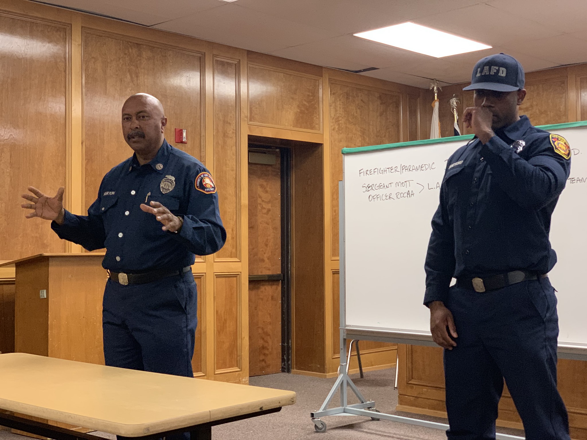 Burton lectures on the history of African Americans in the Fire Service.  He conducts presentations on how to become a firefighter, disaster preparedness awareness and he has served as a motivational speaker for youngsters of all ages.  Captain Burton is a CERT (Community Emergency Response Team) instructor for the L.A. County Fire Department.
